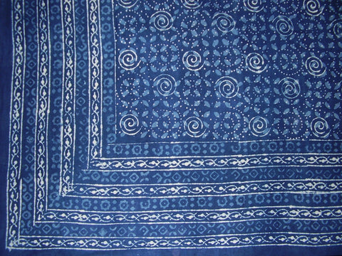 Veggie Dye Block Print Tapestry Cotton Bedspread 106" x 72" Twin Blue