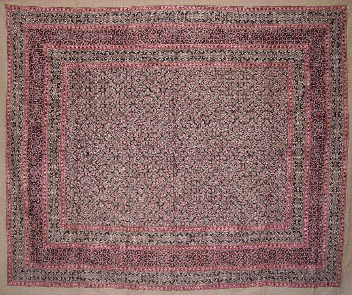 MOROCCAN FOULARD TAPESTRY ~ Beautiful Moroccan Foulard tapestry. Made of 100% cotton offering a strong, durable weave. Measures approximately 108 x 88 inches. Background color is salmon pink with red, teal and deep burgundy accenting colors. They can be machine washed separately on cool/gentle and tumble dried. Moroccan style textiles exhibit the complex aesthetics found throughout the Muslim world. Islamic art, including textile arts, is defined by visual intricacy and by a preference for abstraction and repetition. The freedom with which the motifs are arranged, the variety and elegance of the compositions, and the exquisite color sense they reveal are evidence of their absolute originality. Great quality with endless versatility. Your Moroccan Foulard tapestry can be used for:
