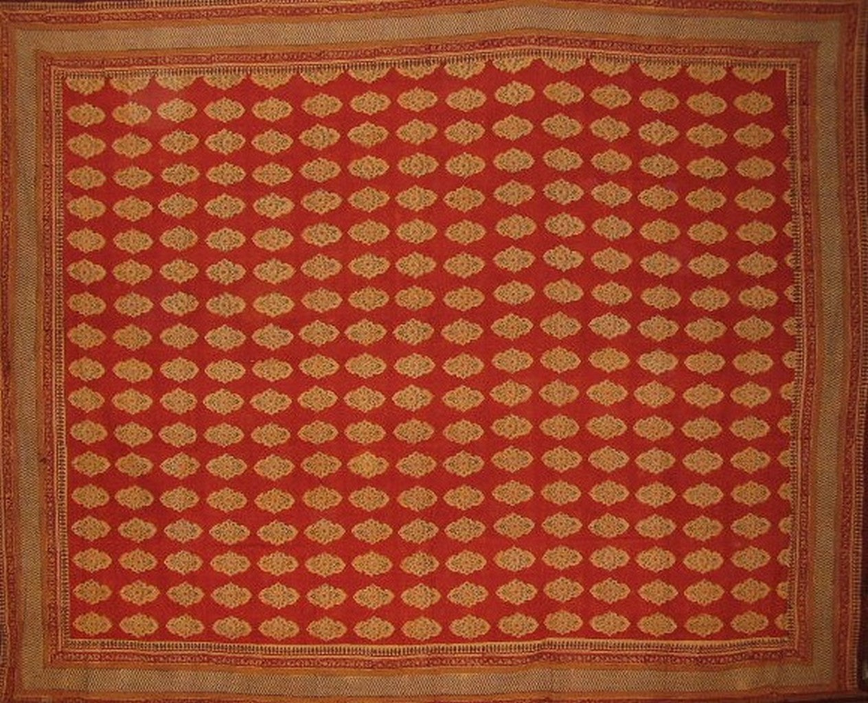 KENSINGTON BLOCK PRINT TAPESTRY - QUEEN ~ Lovely Kensington Block Print tapestry in lovely burnt red-orange. Made of 100% power-loomed cotton offering a strong, tight, durable weave. Measures approximately 108 x 108 inches. They can be machine washed separately on cool/gentle and tumble dried. Hand Block Printing on textiles refers to the technique by which carved wooden blocks covered with dye are repeatedly pressed along a length of cloth to create a repeated pattern. What makes this technique unique is the fact that the design has to be first carved onto the wooden block by hand, and then executed on the fabric. The block printed textiles of India became famous in the 16th and 17th centuries in Europe when the East India Company began to export them in bulk. They are usually colorful floral patterns and known for their fine and intricate detailing. The block print designs created centuries ago remain ever popular through out many cultures around the world today. A lovely quality with endless versatility. Your Kensington Block Print tapestry can be used for: